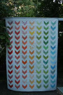 This rainbow chevron quilt has been in my head for a few years now. I finally finished it last weekend! I was originally inspired by this mugrug. As soon as I saw it, I had this idea for a quilt. (My original post on the quilt top is here.)